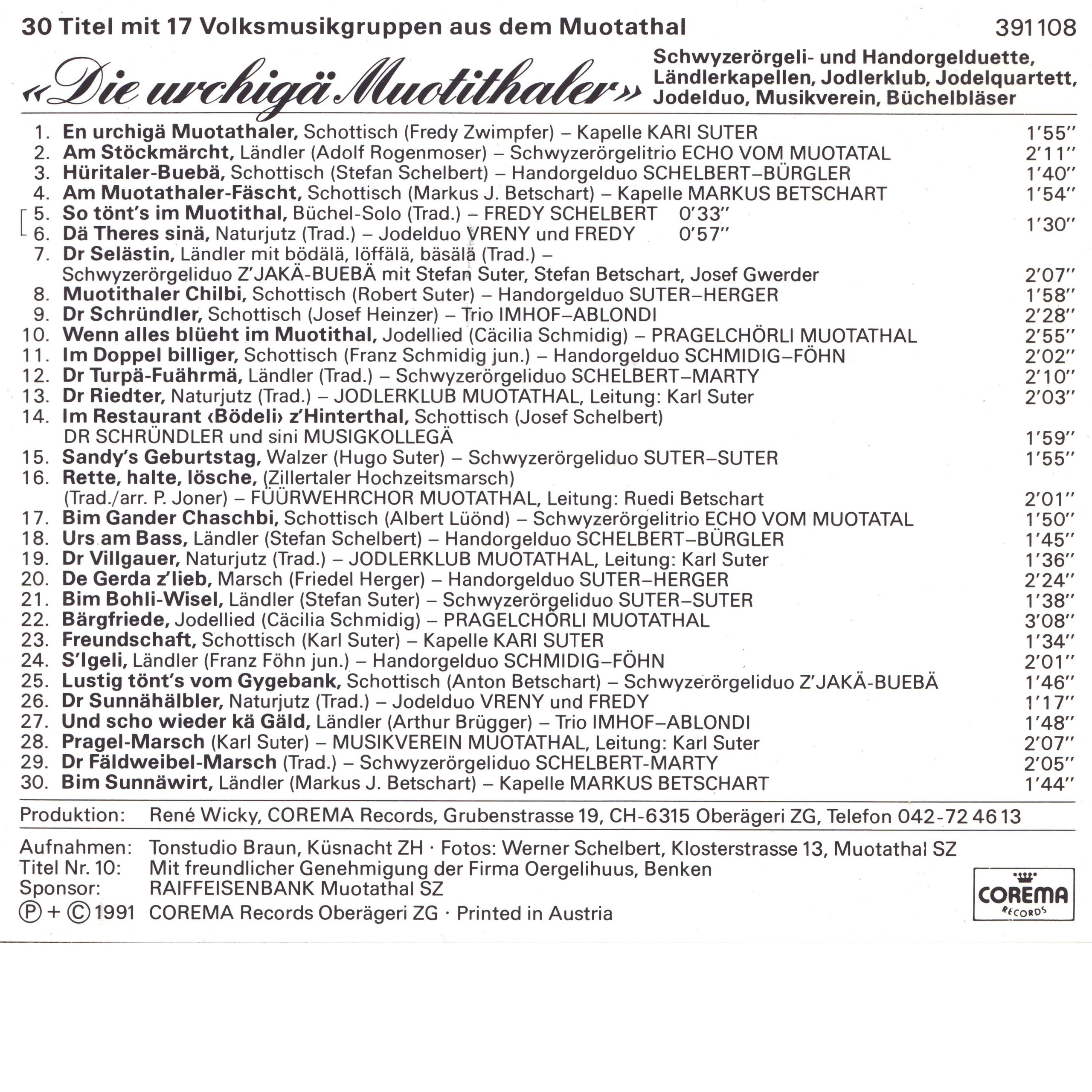 Die urchige Muotithaler - 30 Titel mit 17 Volksmusikgruppen aus dem Muotathal