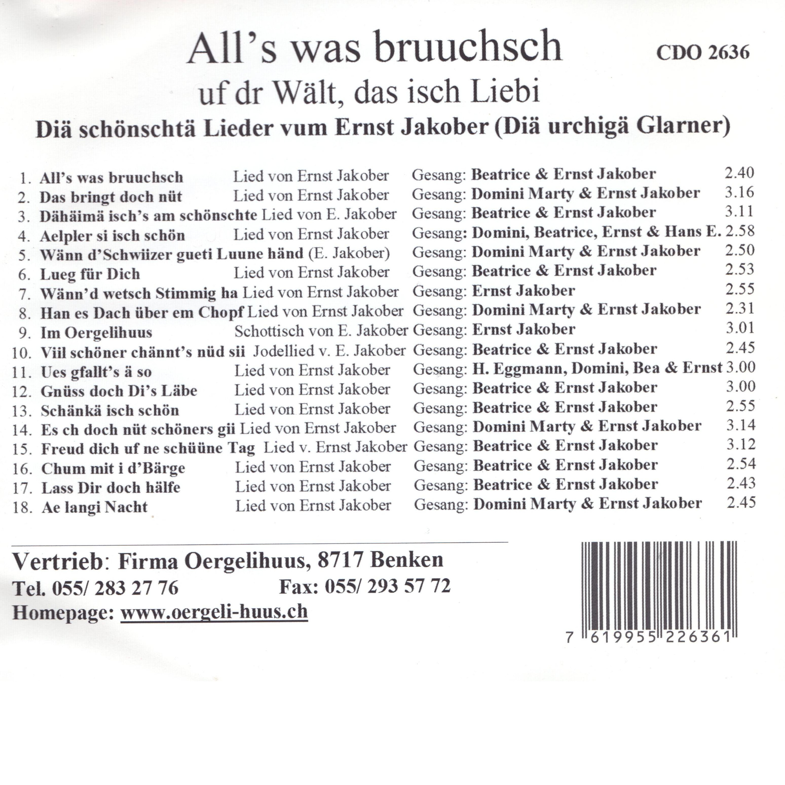 Alls was bruuchsch uf dr Wält, das isch Liebi - Diä schönschte Lieder vum Ernst Jakober